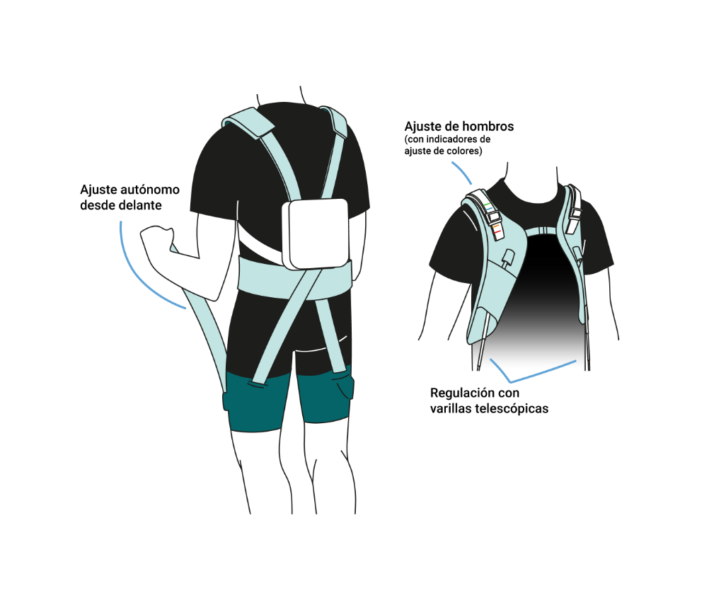 Estos sistemas permiten ajustar y personalizar la longitud del exoesqueleto de acuerdo con las dimensiones y formas corporales de cada usuario. Esto puede lograrse mediante la inclusión de elementos deslizables, rieles ajustables o mecanismos de extensión y contracción que brinden flexibilidad en la configuración de la longitud del exoesqueleto. Proporcionar estas opciones de longitud regulable permite que el exoesqueleto se adapte de manera más precisa a la anatomía de cada persona, mejorando la comodidad, la sensación de ajuste y optimizando la eficacia del soporte proporcionado por el exoesqueleto. Además, la posibilidad de regulación facilita la adaptación del exoesqueleto a diferentes usuarios, aumenta su versatilidad y su capacidad para ser utilizado por un mayor número de personas.